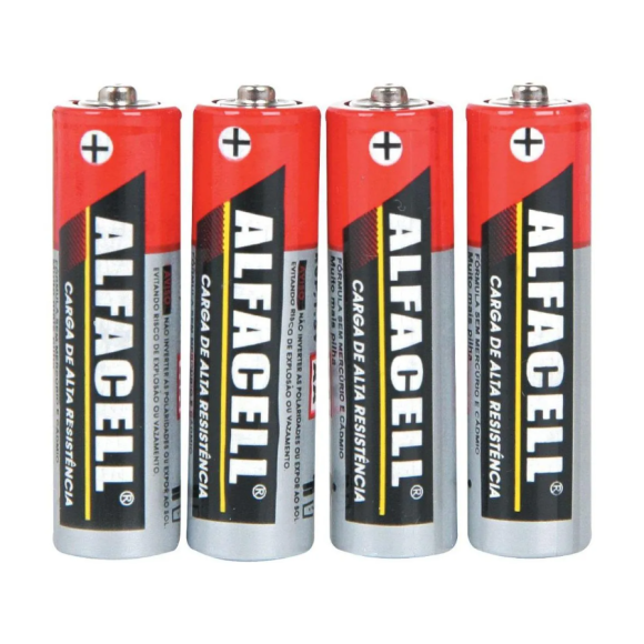 Pilha AA da marca Alfacell. Boa qualidade e excelente custo benefício. 0% mercúrio e cádmio.